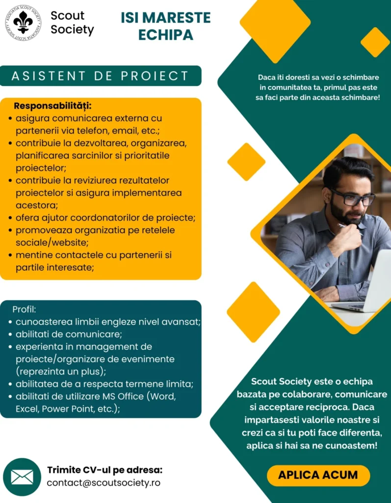 Tu ce planuri ai pentru 2024? Vrei să călătorești mai mult în Europa și în lume? Vrei să începi o carieră nouă? Îți dorești o experiență nouă de învățare și dezvoltare? Acum ai oportunitatea! Ne mărim echipa și vrem să te cunoaștem! Avem două poziți deschise! Acestea sunt: asistent administrativ…