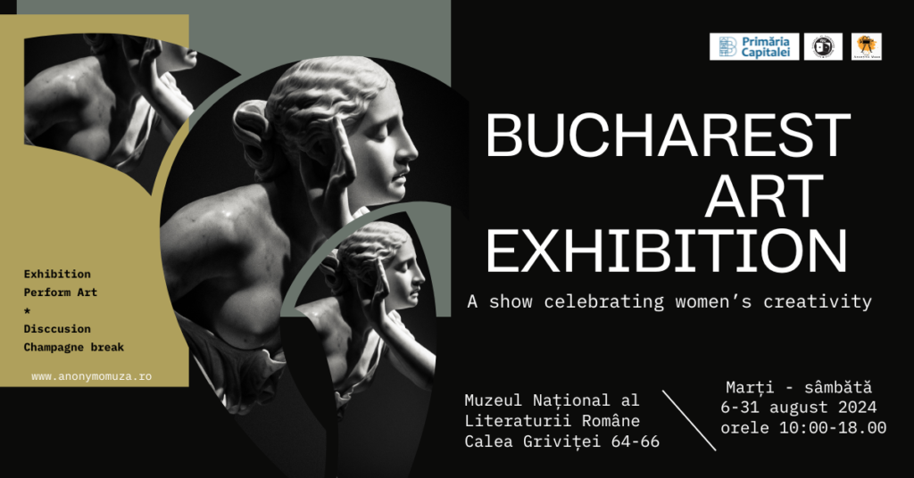 Asociatia Anonymo Muza în parteneriat cu Muzeul Național al Literaturii Române, vă invită la sediul MNLR din Calea Griviței nr. 64-66, în perioada 6-31 august la cea de-a treia ediție a Bucharest ART Exhibition – a show celebrating women’s creativity.