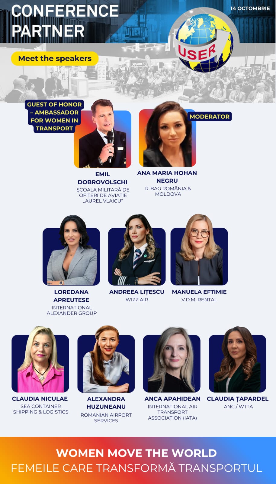 Transportul – o industrie construită de bărbați și perfecționată de femei – se redefinește astăzi prin vocea unor profesioniste remarcabile, care inspiră, inovează și conduc prin exemplu. Evenimentul își propune să aducă în prim-plan povești autentice despre curaj, leadership și transformare, într-un format dinamic și inspirațional.