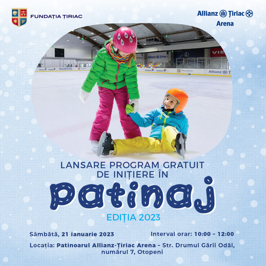Fundația Țiriac lansează sâmbătă, 21 ianuarie, programul gratuit de inițiere în patinaj, ediția 2023. Evenimentul se va desfășura la Patinoarul Allianz-Țiriac Arena și are scopul de a identifica copii cu vârste cuprinse între 3 și 7 ani cu înclinații și interes pentru practicarea patinajului. Micuții vor frecventa gratuit, de până la cinci ori pe săptămână, cursurile de inițiere în acest sport, iar ulterior, cei mai buni dintre ei vor putea fi integrați în echipele de hochei înființate de Fundația Țiriac sau la cursurile specializate în patinaj artistic.