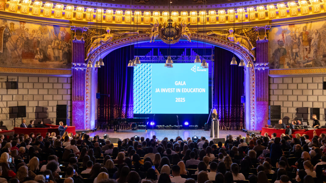Gala JA – Investește în Educație a reunit la Ateneul Român peste 600 de participanți, din toate categoriile de stakeholderi importanți ai organizației, atât din mediul academic, cât și din cel de business, elevi și studenți, alumni, cadre didactice, reprezentanți ai companiilor și fundațiilor, care au susținut financiar, prin consultanță și mentorat, programele, proiectele și competițiile implementate.