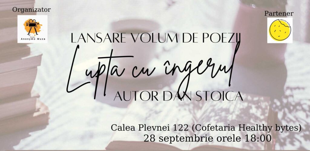Asociația Anonymo Muza vă invită pe data de 28 septembrie orele 18:00 la o întâlnire cu autorul Dan Stoica care își va lansa noul volum de poezii – Lupta cu îngerul.