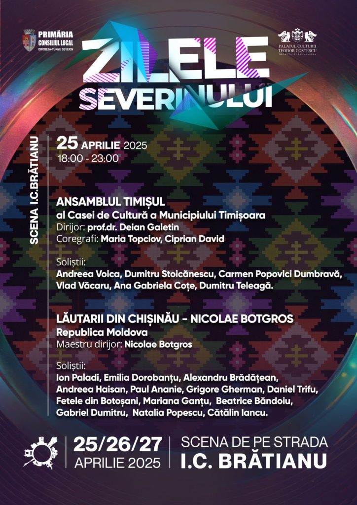 Între 25 și 27 aprilie 2025, municipiul Drobeta-Turnu Severin se transformă într-un veritabil centru al distracției, culturii și muzicii, cu prilejul Zilelor Severinului. Autoritățile locale invită toți locuitorii și vizitatorii să se bucure împreună de un program diversificat, dedicat întregii comunități. Pe strada I.C. Brătianu vor avea loc spectacole folclorice…
